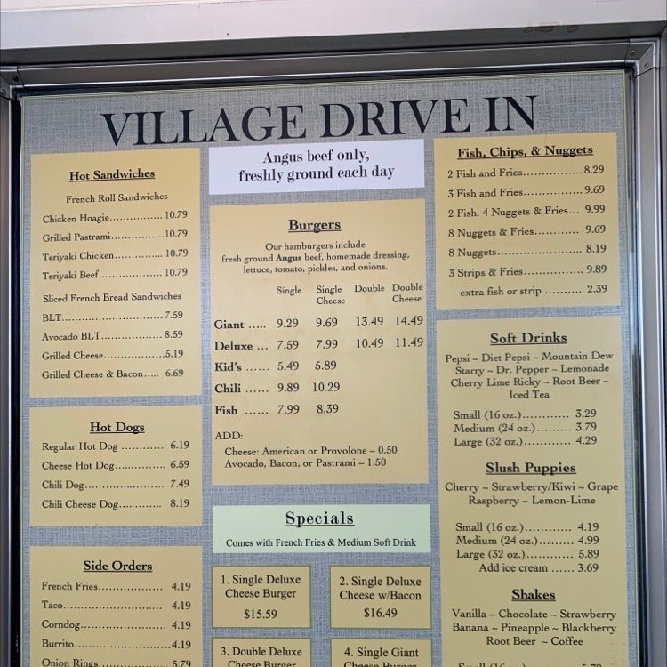 Village Drive-In Menu (Update 2025)
