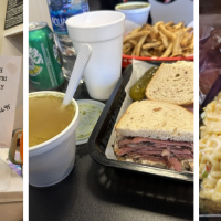 First time eating at this location. I was shopping Nextdoor and decided to order a Pastrami Sandwich and Matzoh ball soup. I was very pleased with the service and the taste of the food. I would recommend. I order a Pastrami sandwich, soup and the order came with a side pickle and coleslaw for about $20.00 .