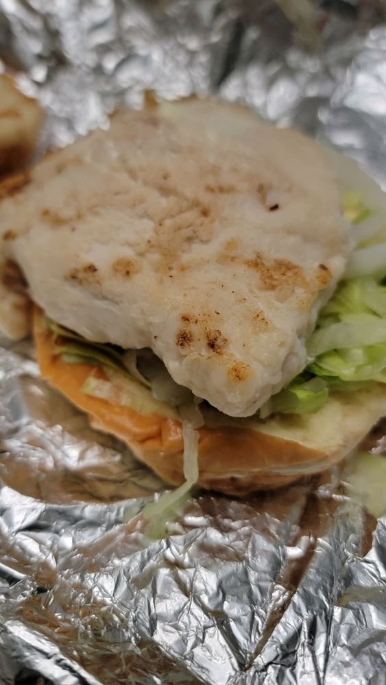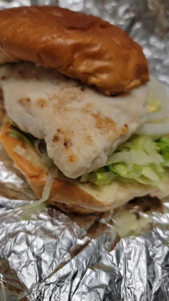 Served with lettuce tomato, onion, American cheese and tartar sauce.