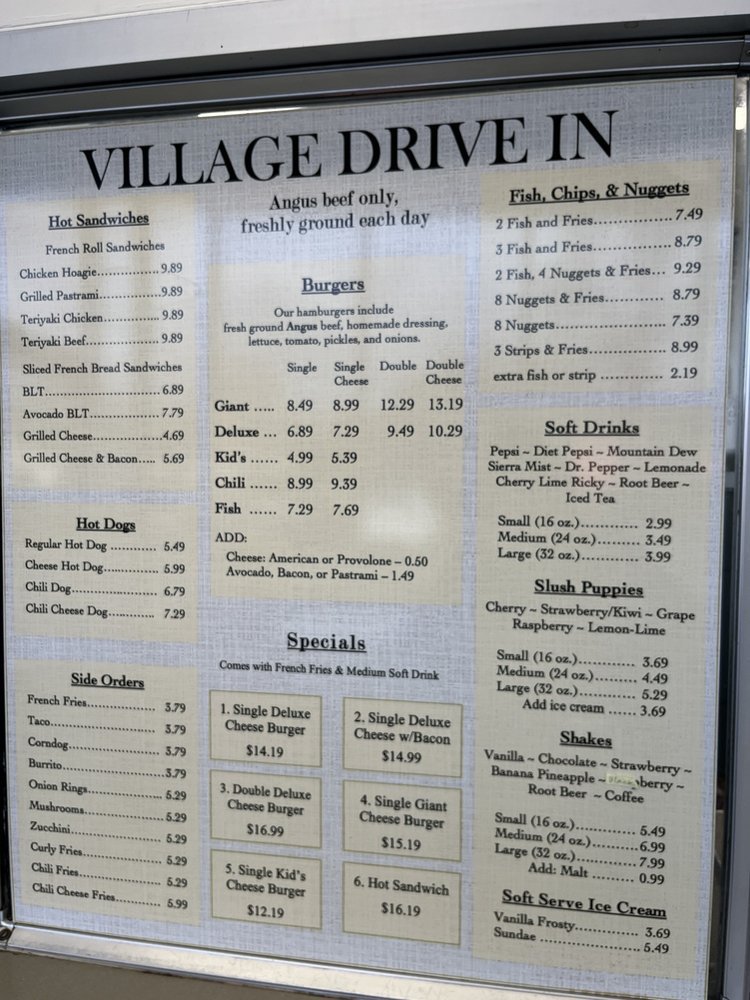 Village Drive-In Menu (Update 2025)